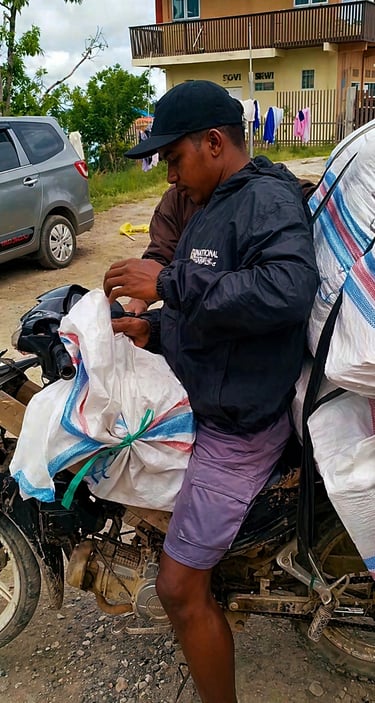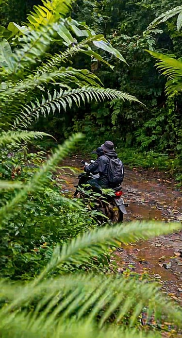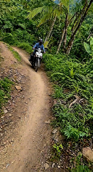 Di sana, perjalanan dilanjutkan dengan sepeda motor, menembus jalan tanah yang licin dan berlumpur, tanjakan curam dengan jurang di sisi jalan, jalur hutan yang belum teraspal, sungai-sungai kecil tanpa jembatan permanen. Setiap kilometer yang ditempuh bukan hanya menguras tenaga, tetapi juga menguji tekad. Namun satu hal yang membuat mereka terus melangkah: kerinduan untuk membawa Firman Tuhan kepada mereka yang belum terjangkau dan yang belum dimuridkan.